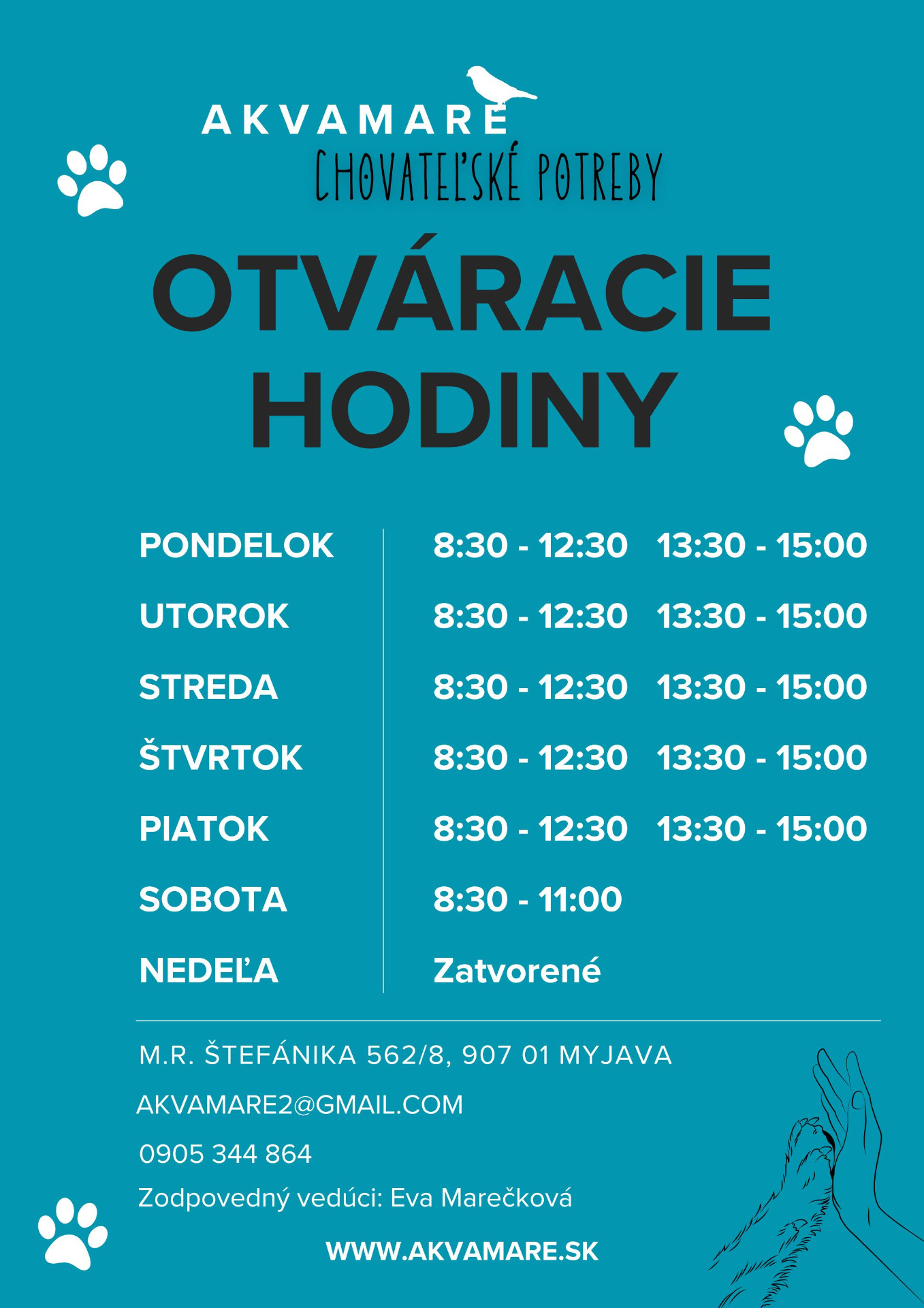 Akvamare Myjava presťahovaná o ulicu oproti od 01.01.2026 ( Kultúrny Dom Myjava, vchod s pravej strany- vedľa bagety, oproti úradu práce)